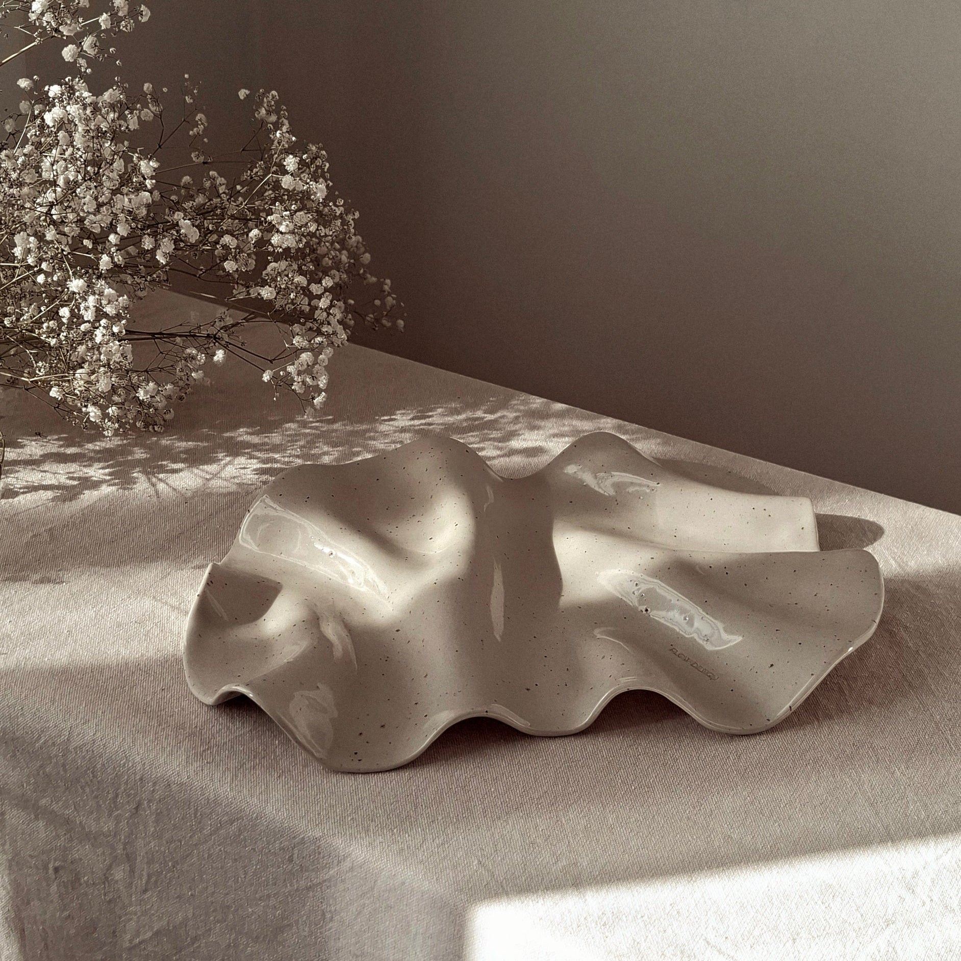 Färg: Beige med lavaprickar