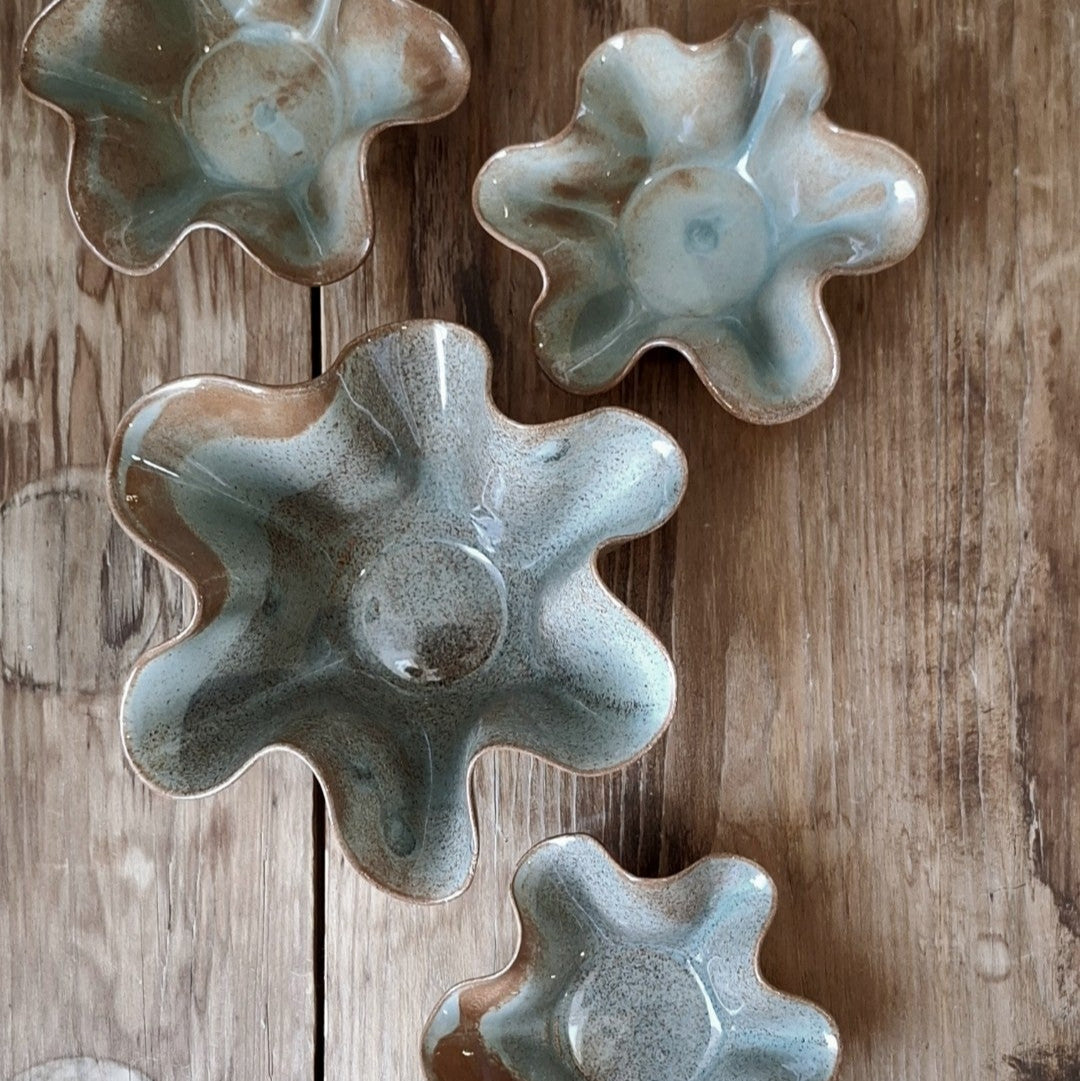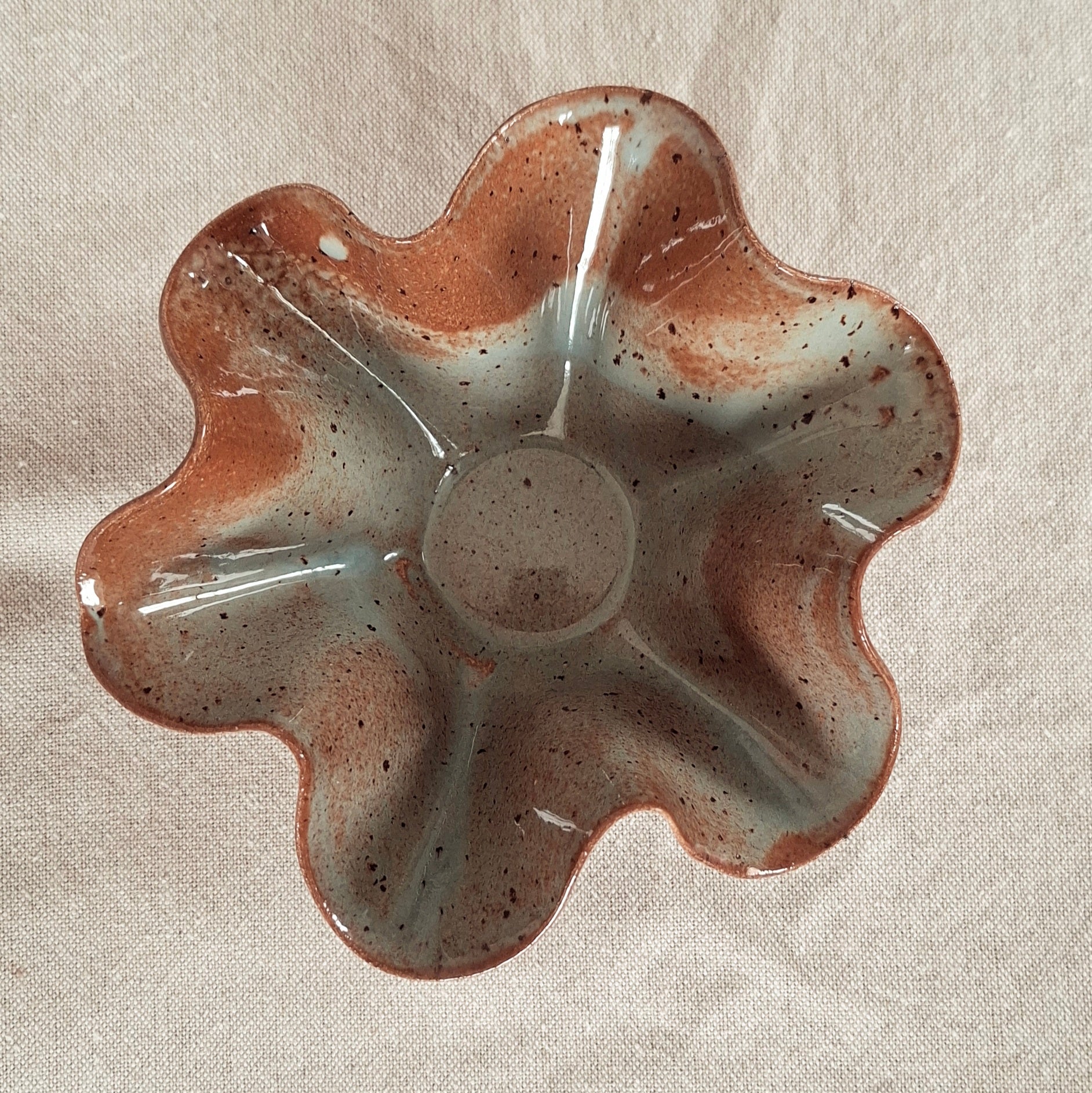 Handgjord vacker ljuskopp eller mindre skål som passar ett värmeljus.