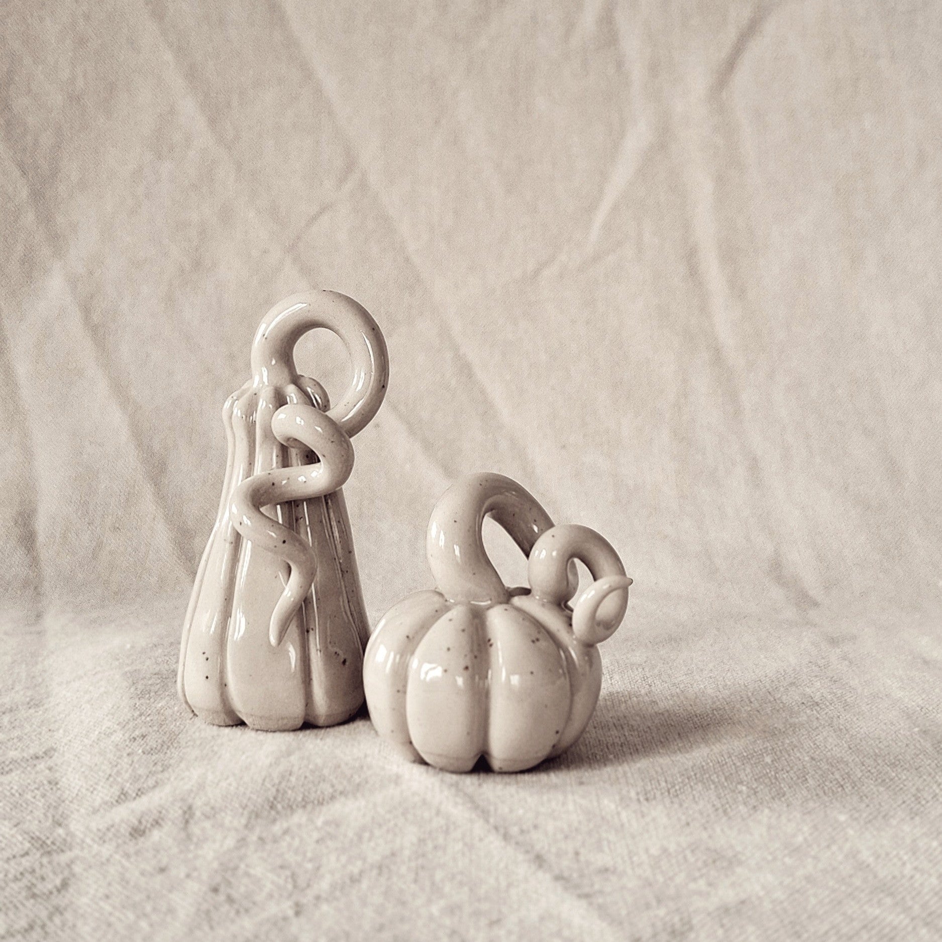 Handgjorda keramikpumpor säljes i set om 2 st. En högre och en lägre tillsammans.